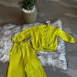 طقم مريح للأطفال يتكون من سترة بأكمام طويلة مع شعار بسيط على الصدر، وبنطلون واسع بخصر مرن وحبل للتعديل، مثالي لإطلالات كاجوال مريحة وملائمة لجميع الأنشطة اليومية.