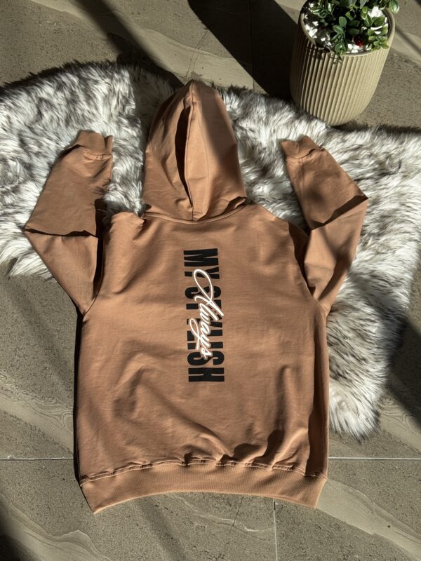 هودي بلون ترابي أنيق بتصميم عصري مريح، ناعم عالي الجودة مع طبعة Departure Café على الصدر لإطلالة كاجوال مميزة.